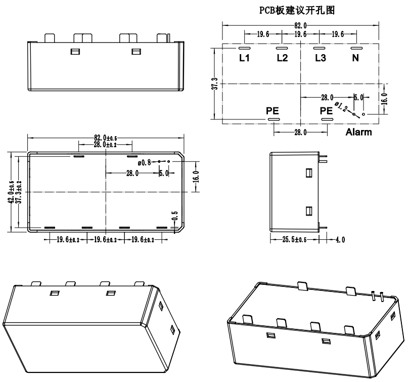 該電涌保護器采用PCB焊接安裝,PCB板鉆孔如上圖(PCB鉆孔圖)所示:焊接:產(chǎn)品可使用手工焊接或使用波峰焊焊接:手工焊接時建議使用恒溫烙鐵,溫度設(shè)置400℃±5℃,焊接時間1~3秒,焊錫絲建議使用常溫焊錫絲;推薦的波峰焊接曲線:預(yù)熱溫度1區(qū):115±5℃;2區(qū):155±5℃;峰值溫度265±5℃;鏈速:1.15~1.25m/min;具體要根據(jù)線路板的不同進行調(diào)整。