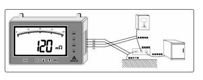 將C1、P1端接導(dǎo)體的一端,C2、P2端接導(dǎo)體的另一端,待接線無誤并確定連接良好后。按下“測試”鍵,啟動(dòng)測試,“告警”指示燈常亮,蜂鳴器發(fā)出“滴滴”的聲音,直到“告警”指示燈熄滅和“滴滴”聲音停止即測試完成。