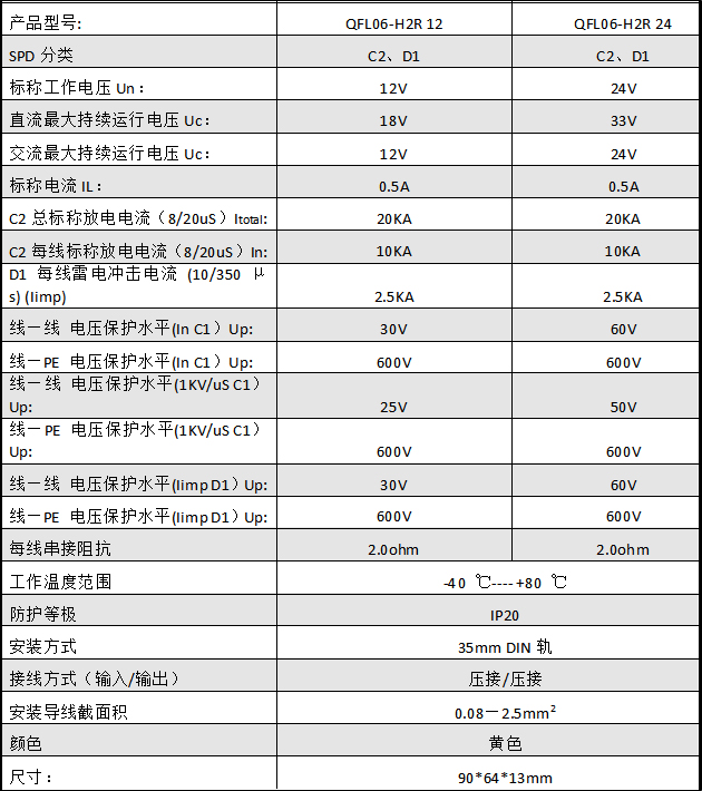 • QFL06-H2R系列          13mm四線12/24V          中普信號(hào)防雷器