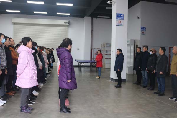 儀式開始前,總經(jīng)理殷建云和董事長殷建軍給全體員工上了節(jié)后復(fù)工復(fù)產(chǎn)第一課——安全生產(chǎn),強(qiáng)調(diào)各干部員工一定要落實(shí)好安全生產(chǎn)工作。隨后向所有到場(chǎng)的同事送上了新年的祝福與問候:“祝愿大家新的一年萬事如意,工作順利,業(yè)績攀升!”